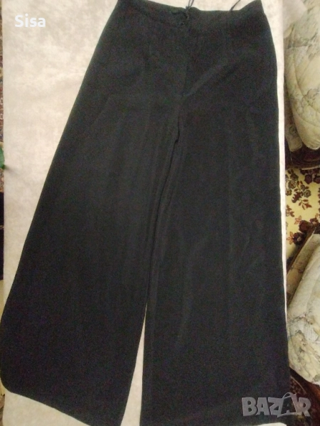 Черен панталон, широк крачол, талия 38см, дължина на крачола от кръста 103 см, ширина на крачола в края 38см едностранно.