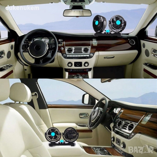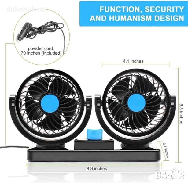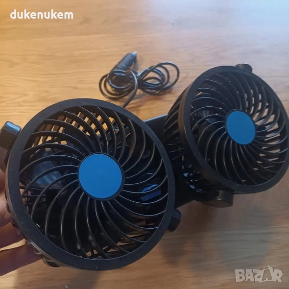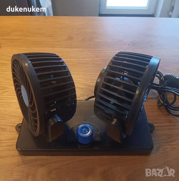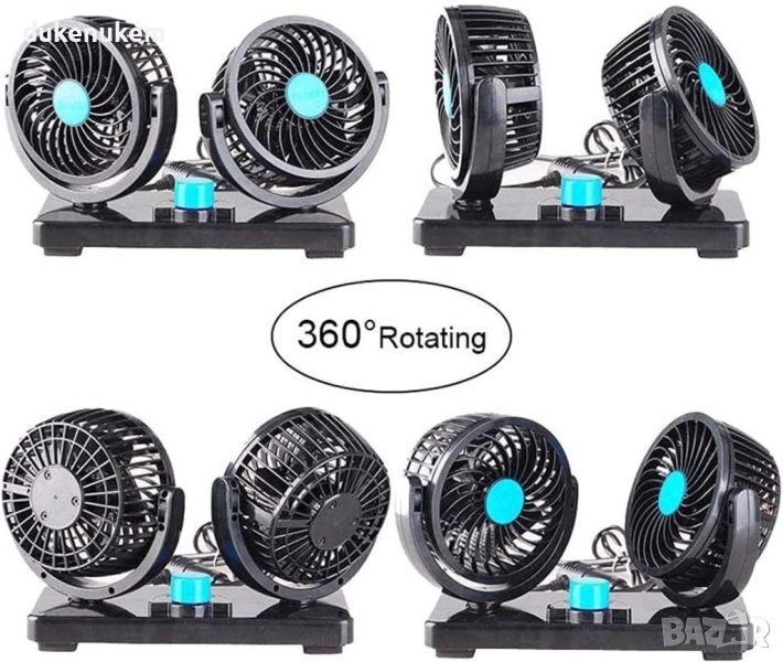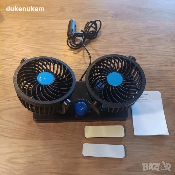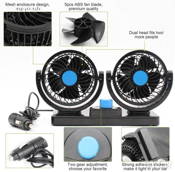 Вентилатор за кола, 12V двоен вентилатор, въртящ се, 2 скорости, с щепсел за запалка