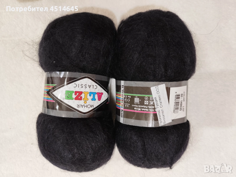 Прежди нови- мохер черен 200г, конус- памук и полиестер, бяла- вълна и памук ,