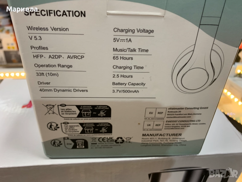 Bluetooth слушалки , 65 часа възпроизвеждане, HIFI , 6 режима