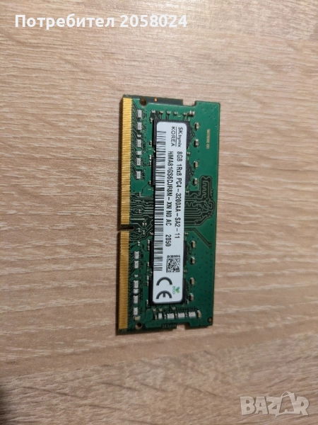 RAM памет за лаптоп 8GB DDR4 3200 MHz марка Hynix PC-3200AA-SA2-11. Тествана и работи без проблеми.