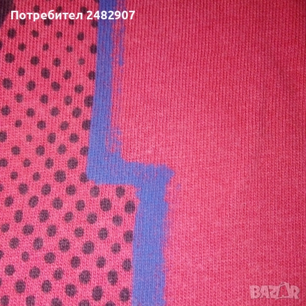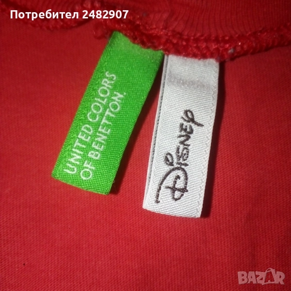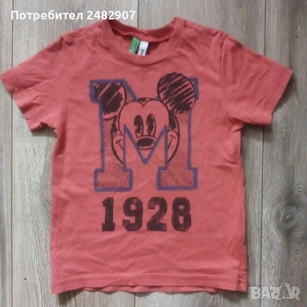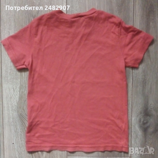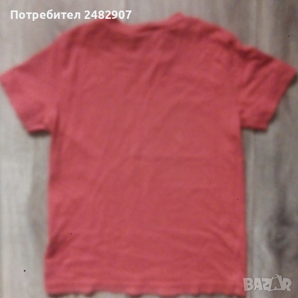 Червена детска тениска с щампа за възраст 3-4 години. Съдържа 100 % памук. Ширина в раменете - 26 см, ширина под мишниците - 31 см, ширина в долната част - 31 см, дължина от рамото до долу - 41 см, дължина на ръкава от рамото - 12 см, ширина на ръкава в долната част - 10,5 см. Много запазена, почти не е използвана, без забележки.