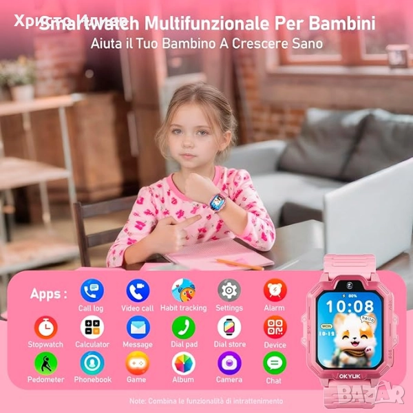 • Детски смарт часовник OKYUK 4G: нашият смарт часовник T17 4G предлага видео разговори, гласов чат, WiFi, LBS GPS проследяване, текстови съобщения, функция против изгубване, режим на клас, HD камера, фотоалбум, история на местоположенията, безопасни зони, SOS бутон, будилник, аларма за изтощена батерия, регулируема яркост на екрана и други.