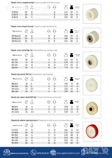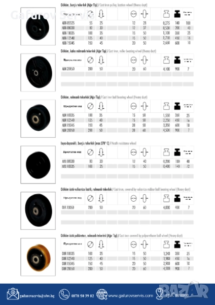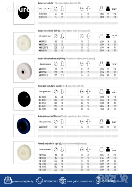 ✅ Материали: полиамид, чугун, полиуретан, гума, термопластика