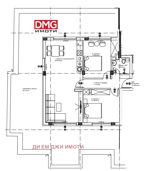 DMG ИМОТИ - Ексклузивен партньор в продажбите предлага 3-стаен апартамент А26 с огромна покривна тераса в сграда SMART HOME BUILDING на ул. 'Станислав Доспевски' в кв. Левски-В, близо до транспортни връзки и предстояща метростанция.