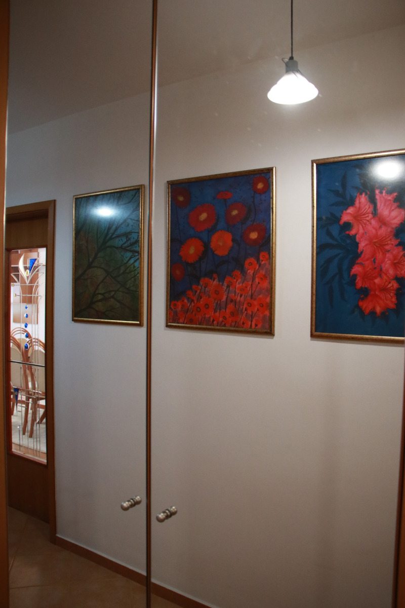 Разпределение: голямо антре с масивна входна врата с тройно заключване и гардероби, в които са поставени пералня и бойлер; дневна/хол с кухненски бокс и излаз на приятна тераса с подвижен простор; голяма баня с отделена в нея с плъзгащи врати душ кабина и тоалетна; малка тоалетна и стая.
