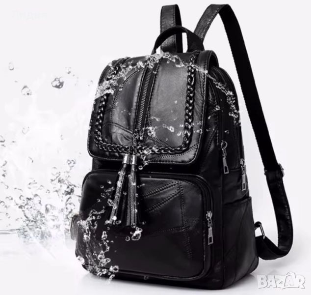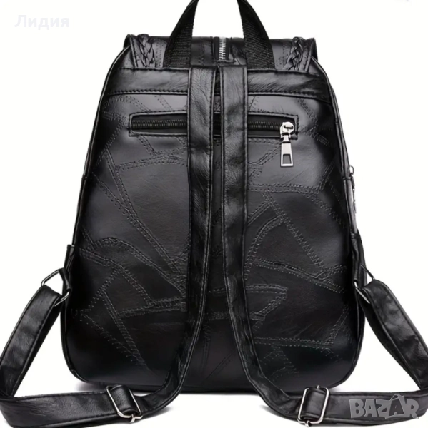 Стилна и елегантна дамска раница, изработена от висококачествена еко кожа в класическо черно. Моделът съчетава модерна визия и практичност – идеален както за ежедневието, така и за по-официални поводи.