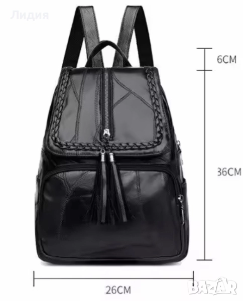 Елегантна дамска раница от еко кожа с декоративни плитки и пискюли → Обява 52290619