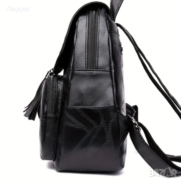 Елегантна дамска раница от еко кожа с декоративни плитки и пискюли