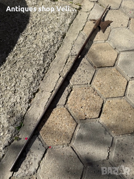 Изключително реалистична алебарда изработена от метал с дървена дръжка. Добро състояние. Предлагаме доставка с Еконт и лично предаване за градовете Велико Търново, Русе и Сливен! Дължина-214см.