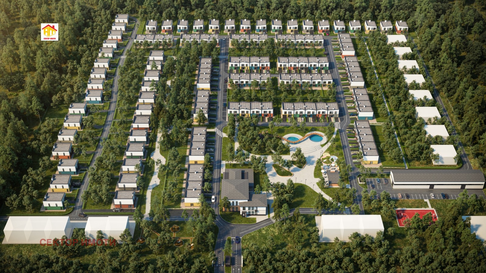 Самостоятелни двуетажни къщи в затворен комплекс, разположен в живописна гора с чист въздух на обща площ 100 000 кв. м, от които 70 000 кв. м зелени площи в с. Вакарел на 35км. от гр. София, на 20 мин. с кола по магистрала Тракия .