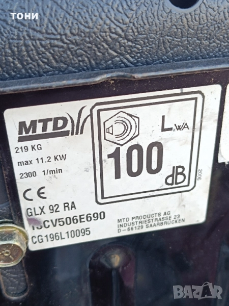 Тракторна косачка Gutbrod MTD /GLX92RA ,производство-Германия. Двигател Briggs Stratton Kohler 15коня. Задно изхвърляне на окосената трева.Без кош. 7нива на косене. Трансмисия/Drive Transmatic/. Цена 3800лв. За повече информация Телефон/Viber 0878393400 "270257"