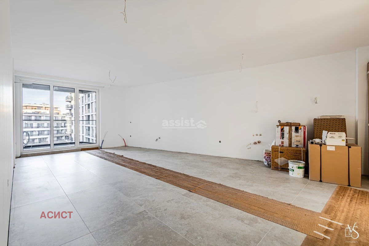 Апартаментът се състои от: просторна дневна с кухненски бокс и трапезария, две спални, две бани с тоалетна, коридор и две тераси.