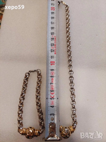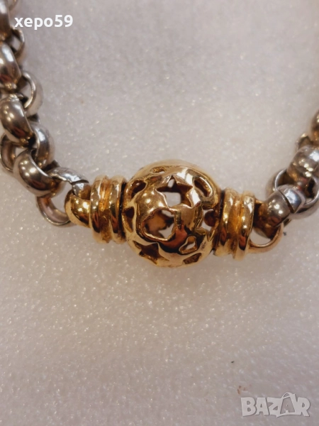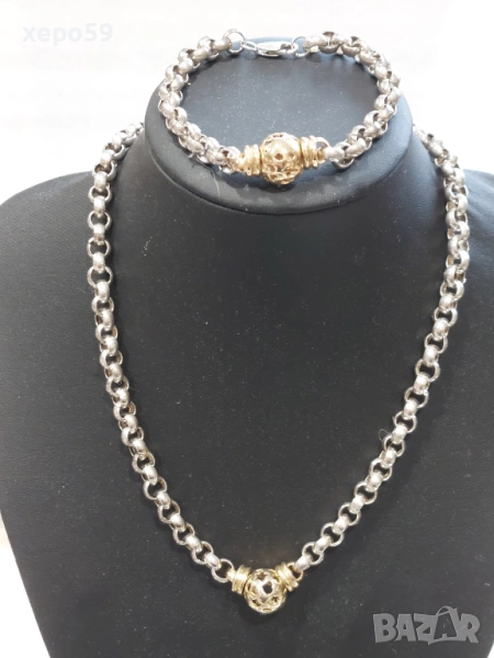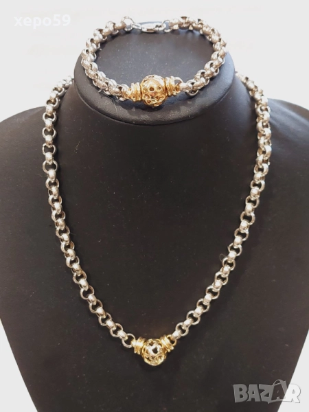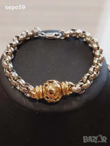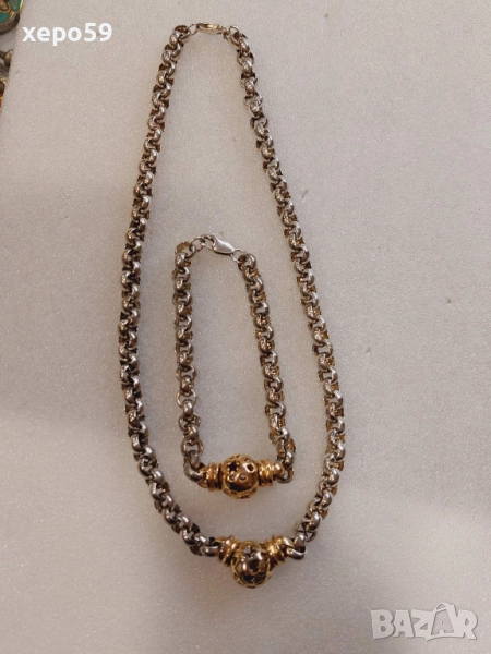 Прекрасна сребърна авторска дамска гривна и колие.Сребро проба 925,златни 9 каратови апликации → Обява 52293101
