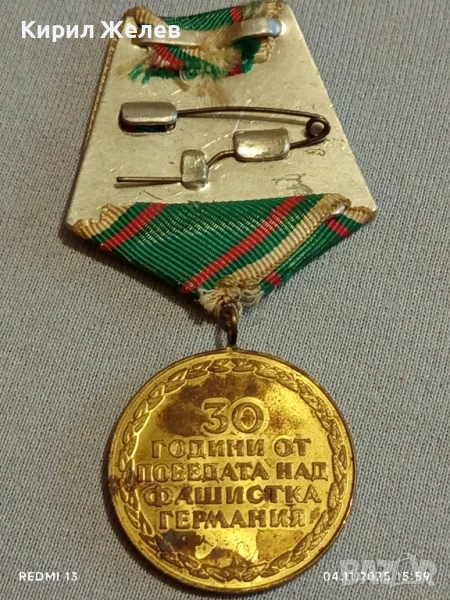 Медал от соца 30г. От ПОБЕДАТА НАД ФАШИСТКА ГЕРМАНИЯ за КОЛЕКЦИОНЕРИ 34624 → Обява 52293335