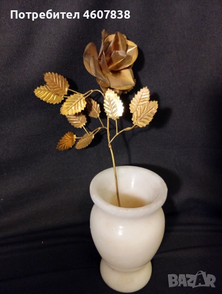 Стара красива месингова роза с много детайли.С мраморната вазичка 68 лв.