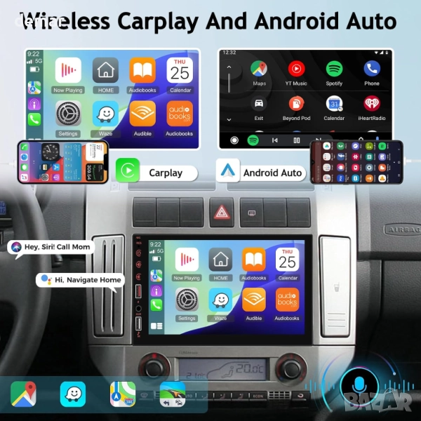 Двудиново автомобилно радио с безжичен Carplay и Android Auto, 7 инча