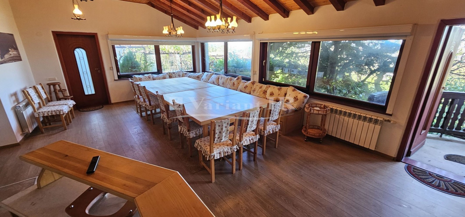 Къщата е с РЗП 228кв.м., с просторни помещения и високи тавани.