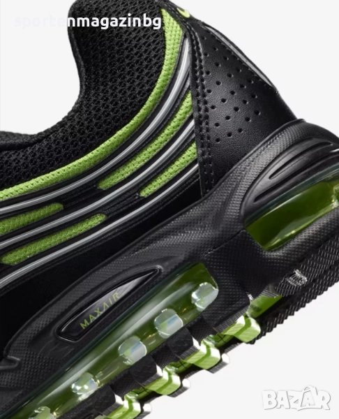 Max Air предлага специална междинна камерна подметка, която представлява затворен в специална мембрана въздух на ходилото, който поема натоварването при движение и същевременно осигурява максимална мекота и стабилност. Устройството Max Air осигурява ненадминат комфорт през целия ден. Горната част съчетава текстил и синтетична кожа за перфектно дишане и издръжливост а допълнителните TPU наслагвания увеличават здравината на маратонките. Допълнително подсилени в областта на петата и пръстите. Лого Nike от всички страни и надпис Max Air с лого встрани и в задната част. Нисък профил за по-голяма свобода при движение. Вътрешната текстилна част заедно с изключително омекотената стелка осигуряват невероятна мекота и комфорт с всяка крачка. Супер омекотената междинна подметка подкрепя стъпалата при движение и намалява сътресението, придава лекота и еластичност на маратонката и осигурява правилното позициониране на краката по време на движение. Мека и удобна, възглавницата Max Air предлага точното количество опора. Външната гумена подметка е стабилна и гъвкава, за да осигури перфектно сцепление по време на движение.