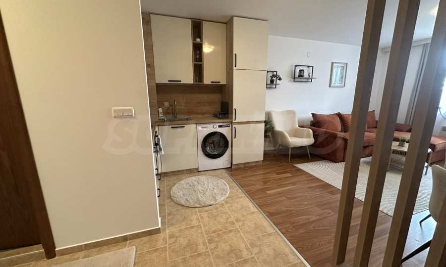 Имотът е ситуиран от: коридор, светла и уютна дневна , с големи прозорци, удобен разтегателен диван, телевизор с плосък екран и масичка за кафе. Кухненският бокс е напълно оборудван има вградени уреди, котлони, хладилник, микровълнова, електрическа кана, посуда и прибори за готвене.Спалнята е отделна и предлага голямо легло с качествен матрак, гардероб с достатъчно място за багаж и нощни шкафчета с лампи. Банята е модерна, с душ кабина, сешоар и всички необходими удобства.