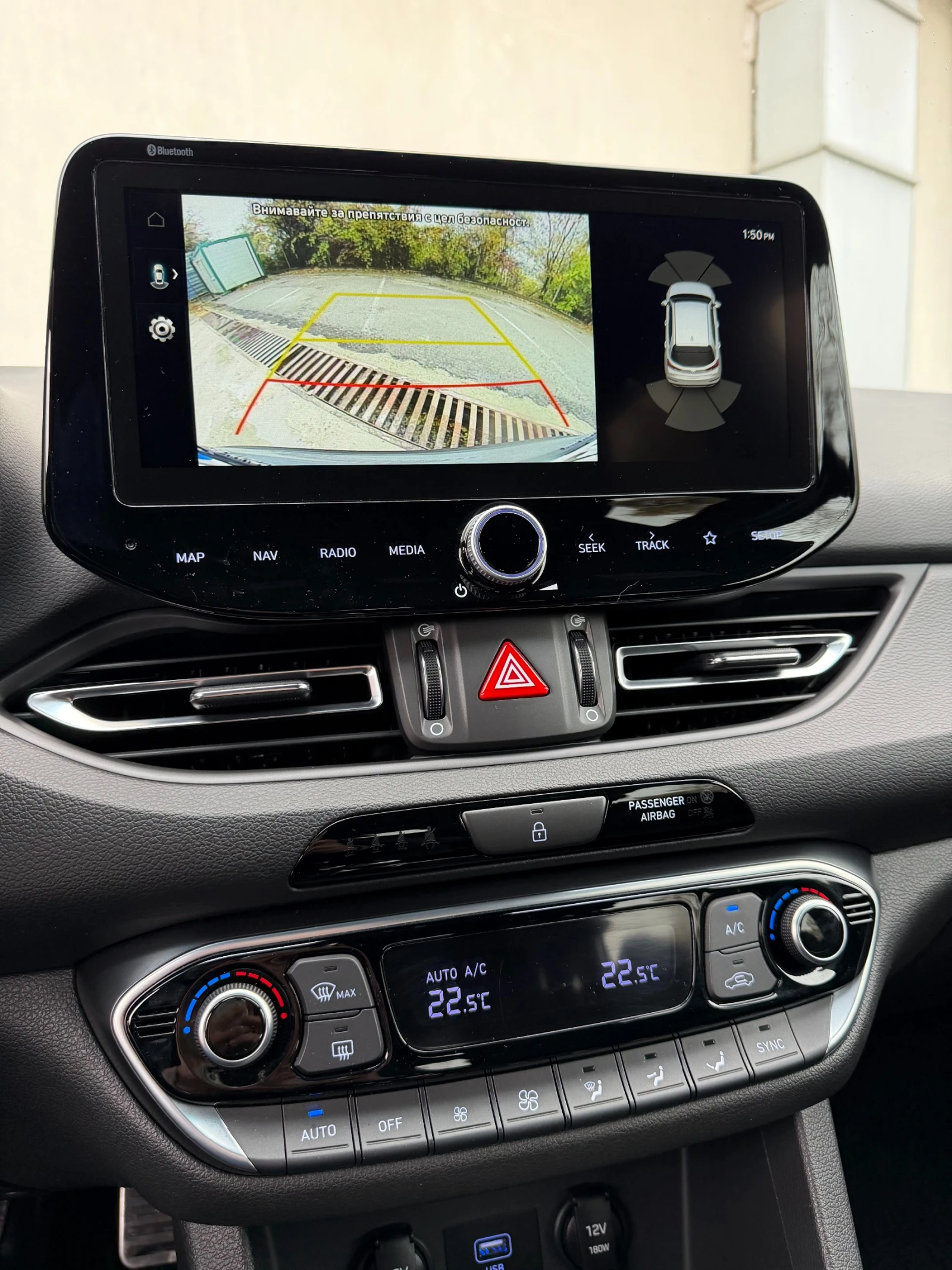 Здравейте, предлагаме Ви автомобил закупуван от официално представителство на Хюндай. Колата има пълна сервизна история и е в заводска гаранция до 14. 07. 2026г. Изрядно техническо състояние. Възможност за лизинг и съдействие в КАТ. Разполага със следното оборудване: Отопление на предните седалки, Отопление на волана, Контрол на дистанцията при паркиране отпред и отзад, Автоматична климатична инсталация, Камера за обратно виждане, Apple Car Play и Android Auto, Дигитален екран на километража, Навигационна система, LED пакет: LED дневни свелини, Предни фарове за мъгла MFR LED (Multi Face Reflector LED): Подобрени многорежимни LED фарове, ABS (Anti-block System): Антиблокираща система на спирачките EBD (Electronic Brake Distribution): Електронно разпределение на спирачното усилие BAS (Brake Assis System): Електронна асистенция на спирачното усилие при екстремно спиране ESS (Emergency Stop Signal): Автоматично включване на аварийните светлини при внезапно спиране ESP (Electronic Stability System): Eлектронна система за динамичен контрол на траекторията HAC (Hillstart Assist Control): Система за контрол при потегляне по наклон VSM (Vehicle Stability Management): Система за контрол на стабилността TPMS (Tire Pressure Monitoring System): Система за следене налягането на гумите LDW (Lane Departure Warning): Система за следене на пътната лента и предупреждение при нейното напускане LKA (Lane Keep Assist): Система за поддържане на пътната лента FCA (Front Collision Assist): Автономна аварийна спирачка с разпознаване на пешеходци/автомобили/велосипедисти и превенция на сблъсък в кръстовище DAW (Driver Attention Warning): Система за разпознаване на умора при водача HBA (High Beam Assist): Система за автоматично превключване между къси и дълги светлини ISLA (Intelligent Speed Limit Assist): Система за автоматично регулиране на зададена скорост чрез разпознаване на пътните знаци ISG (Intelligent Stop & Go): Старт-Стоп система на двигателя за икономия на гориво PDW-R (Parking Distance Warning-Reverse): Система за помощ при паркиране на заден ход Cruise Control: Система за поддържане на зададена скорост с управление от волана + ограничител на скоростта Bluetooth Cell Phone Interface: Безжична система за връзка на мобилен телефон с аудиосистемата на автомобила с управление от волана и аудио стрииминг USB вход за първи ред седалки Сензор за светлина за автомaтично включване на фаровете и осветлението на таблото Автоматично заключване на вратите при потегляне Система ISOFIX за триточково закрепване на детска седалка за страничните места на задната седалка Кожен волан и кожена ръкохватка на скоростния лост Тонирани стъкла Регулиране седалката на водача по височина Регулируем по височина и дълбочина волан Луксозна текстилна тапицерия на седалките Стерео аудиосистема и радио с RDS функция, възможност за четене на MP3 формати и говорители за високите честоти (Tweeter) За повече информация се обадете на посочения телефон: 0876 200 800 Работно време: Понеделник до Петък 09: 30 - 18: 00 , Събота с предварителнa уговорка.