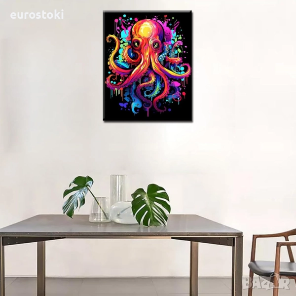Tucocoo Комплекти за рисуване по номера с рамка Октопод, с четки и акрилни бои върху платно за възра