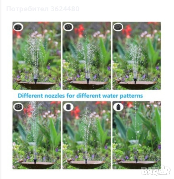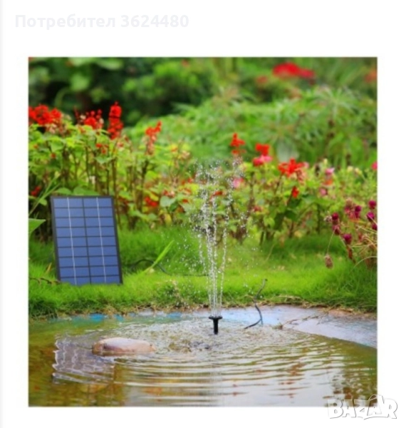 Фонтана се захранва директно от слънцето, като започва да работи само 3 сек след поставяне на слънце.