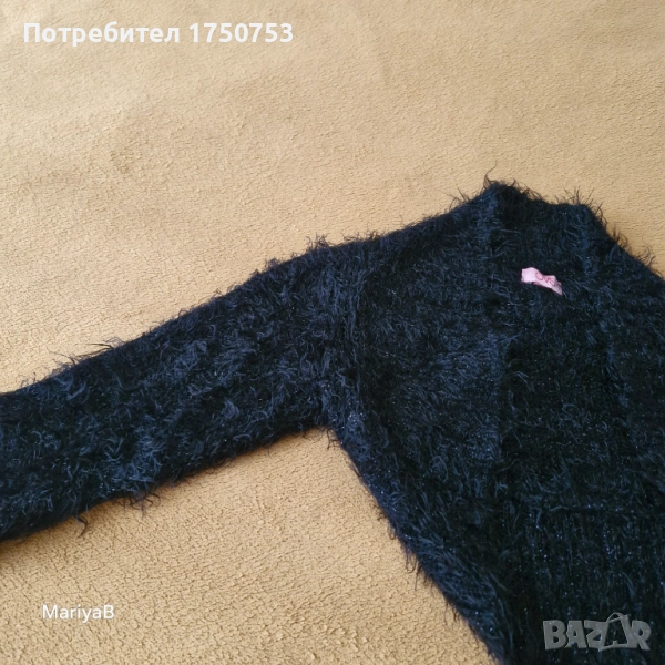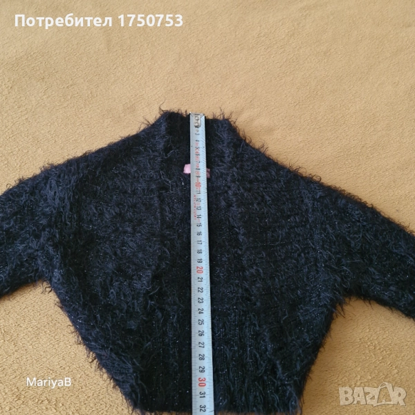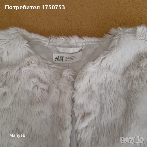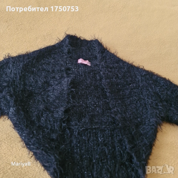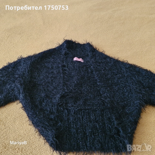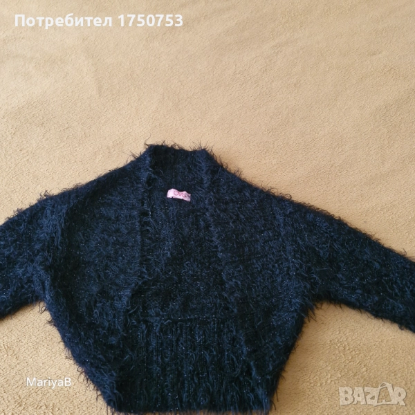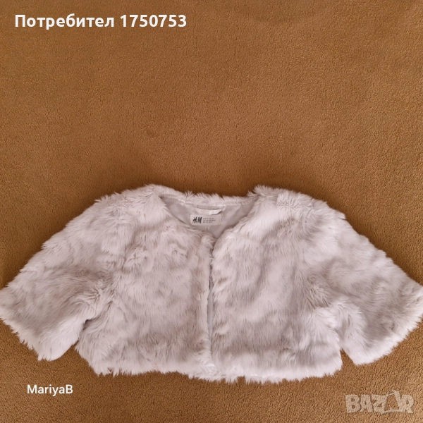 Два броя чудесно, късо пончо. Отлично състояние и качество. Едното е бяло , пухкаво , със сатенена подплата на H&M. Закопчава се с 1 копче. Подходящо за 6-8 г момиче. Допълнителни размери: ширина при гърди 36 см; дълж. от рамото до долу 25 см; къс ръкав с дълж. 21 см. Другото пончо е пухкаво , черно , с блестящи нишки , на производител OVS. За момиче на 5-6 г. Допълнителни размери: дълж. на ръкава 41 см; от рамо до рамо 28 см; дълж. на гърба 32 см. Пончото е без закопчаване. Цена за брой 10 лв.