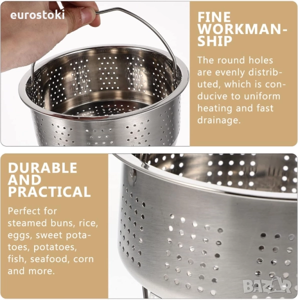 Може да се готви на пара равномерно и бързо, скъсява времето за чакане на вкусна храна. Може да се използва не само като кошница за готвене на пара, но и като цедка или контейнер за плодове.