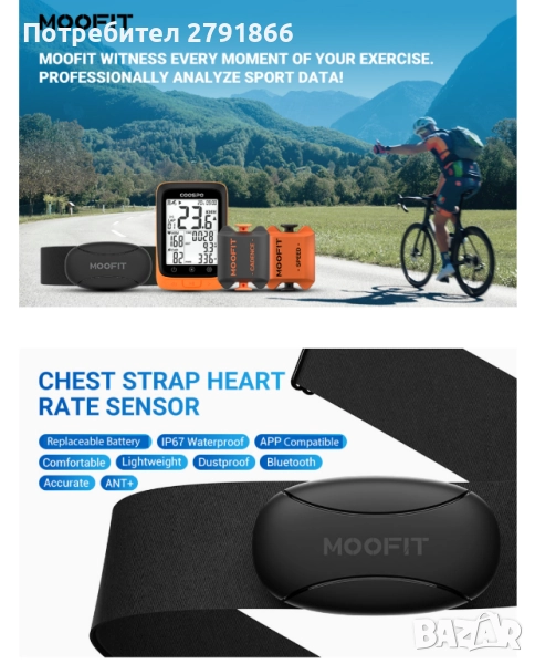 - Премиум пулсомер - Новоразработеният пулсомер moofit HR8 с колан за гърди осигурява ниска консумация на енергия, по-мощни алгоритми и по-голямо разстояние за комуникация. Точността до ±1 удара в минута е по-точна от оптичното измерване на пулса. Записва данните за пулса ви в реално време точно и бързо по време на тренировка!