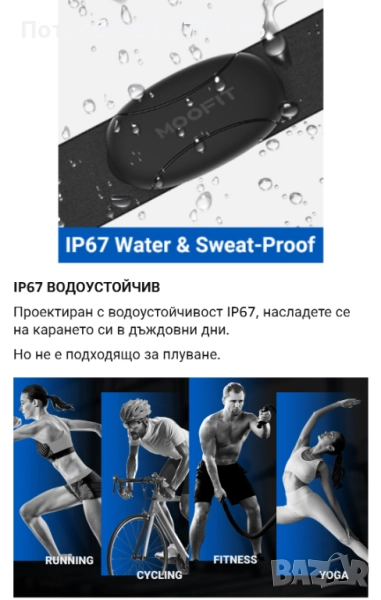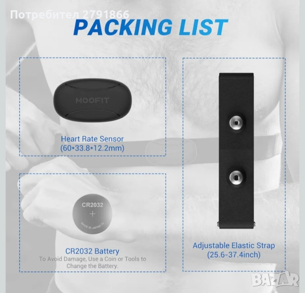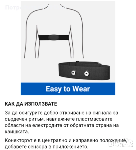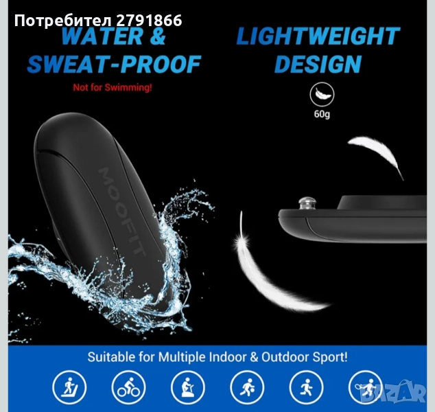 Сензор: 60x33.8x12.2 мм, Регулируема каишка: 65-95 см