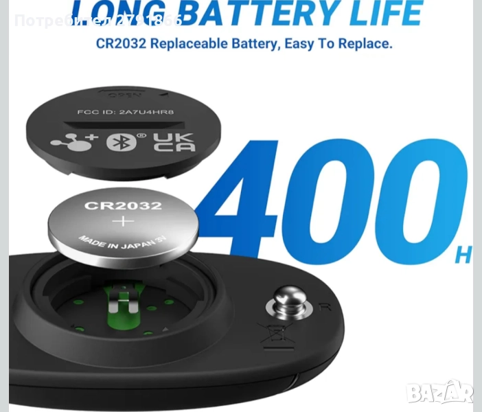 - Сменяема батерия - Пулсомерът се предлага със сменяема батерия CR2032, която издържа до 300 часа.