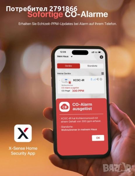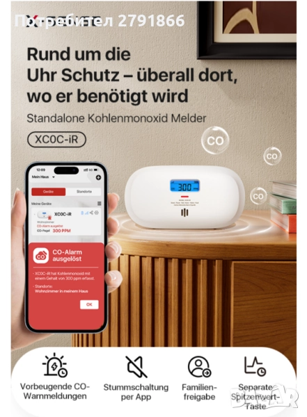 - Забележка: Детекторът за въглероден оксид XC0C-iR се свързва директно с приложението чрез 2,4 GHz Wi-Fi мрежа. Не изисква базова станция.