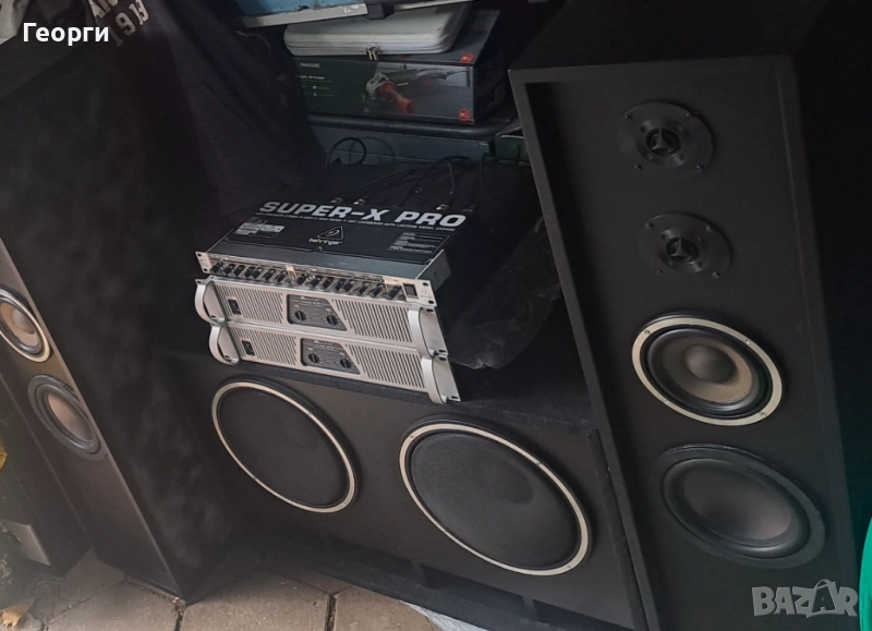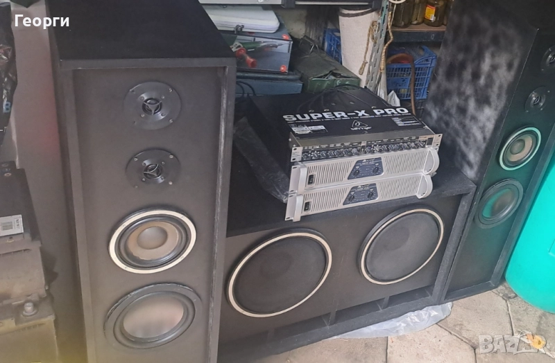 Продавам 2 усилвателя Alto Mac 2.3, купувани нови от Англия, налични кашони, кросоувър Behringer Super X-pro и колоните от снимките Само вземане от място. Размери на колонити: високи:115 см, ш:30 см, д:40 см, пищялките не работят, бас касата: висока 57см, дълга:88 см, широка 45см