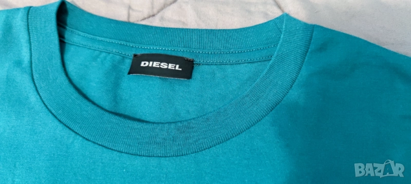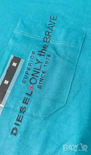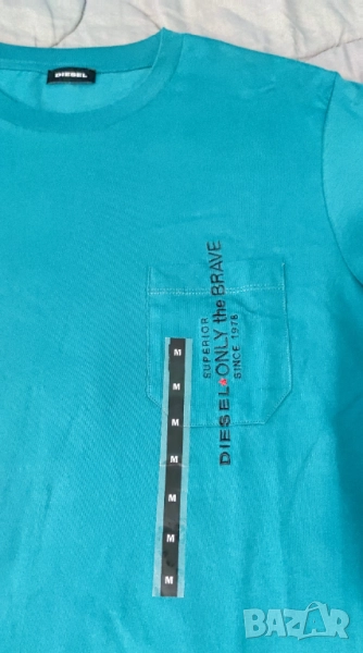 Тениска Diesel в тъмно зелен цвят, размер M. Чисто нова с етикети, подходяща за подарък. Надписите за зашити, така че няма как да се изтъркат от пране. Много добър дизайн. Ако имате въпроси или искате още снимки ми пишете или се обадете. Изпращам с преглед и тест.