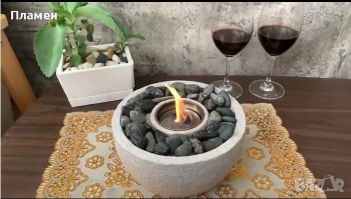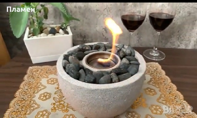 Декоративна камина на биоетанол декорация камък и огнище 23х11 см.