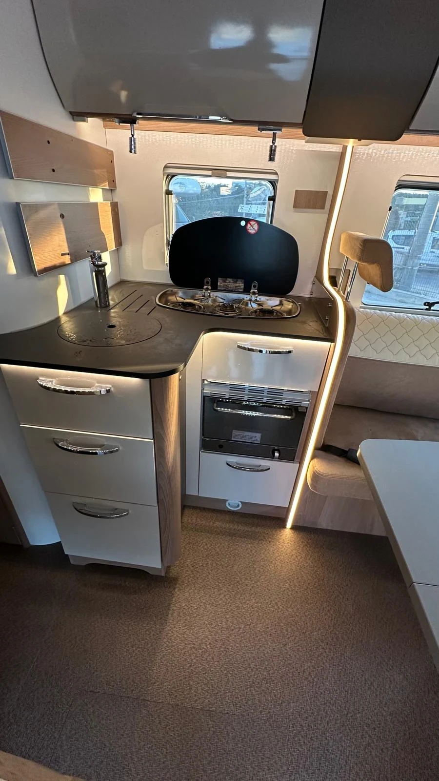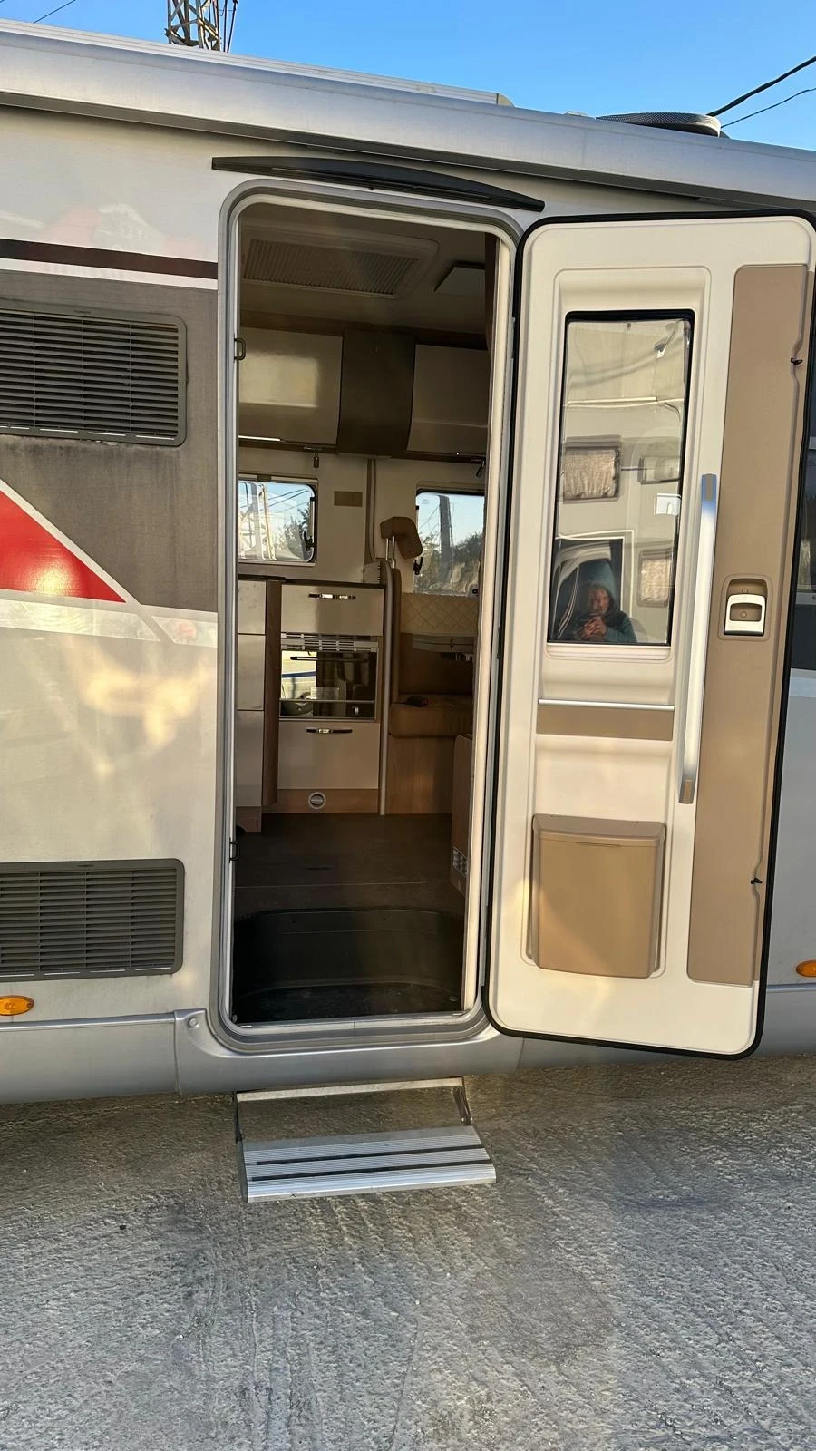 Сателитна чиния работеща с Булсатком или А1 - Телевизор с DVD - Голям багажник с врати от двете страни - Щори и комарници на всички прозорци и люкове - Голяма тента 5, 5 метра - Вградена фурна за готвене - Три газови котлона с пиезо запалване - Голяма врата на жилищната част - 16 цола алуминиеви джанти - Отделни баня и тоалетна - Навигация с две камери за задно виждане - Въздушни възглавници с компресор и отделно напомпване - Централно заключване за вратата и за кабината - Пилотски седалки, въртящи се на 360