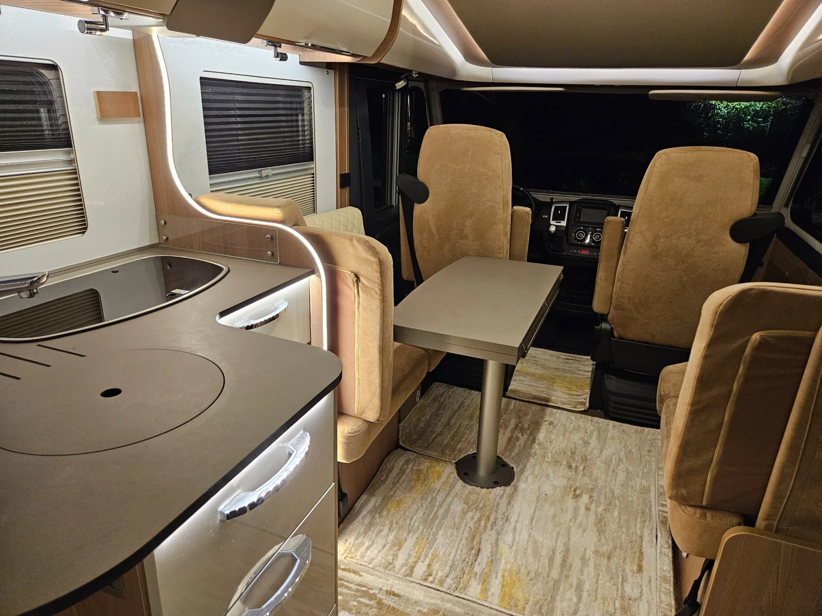ПРОМОЦИЯ ДО 25. 02. 2026Г. - ЦЕНА: 59490 ЕВРО ** ** ** ** ** ** ** - ПЪРВИ СОБСТВЕНИК Интегриран кемпер, 6 места за спане, 4 места за пътуване. Зимно изпълнение-двоен под. Оборудване: -Климатик в жилищната част- Truma, климатик към двигателя. -Голям хладилник 140 литра. -