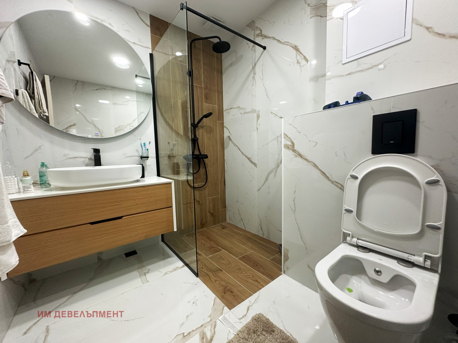 Санитарните помещения са с инталиански материали, завършени по интериоерен проект.