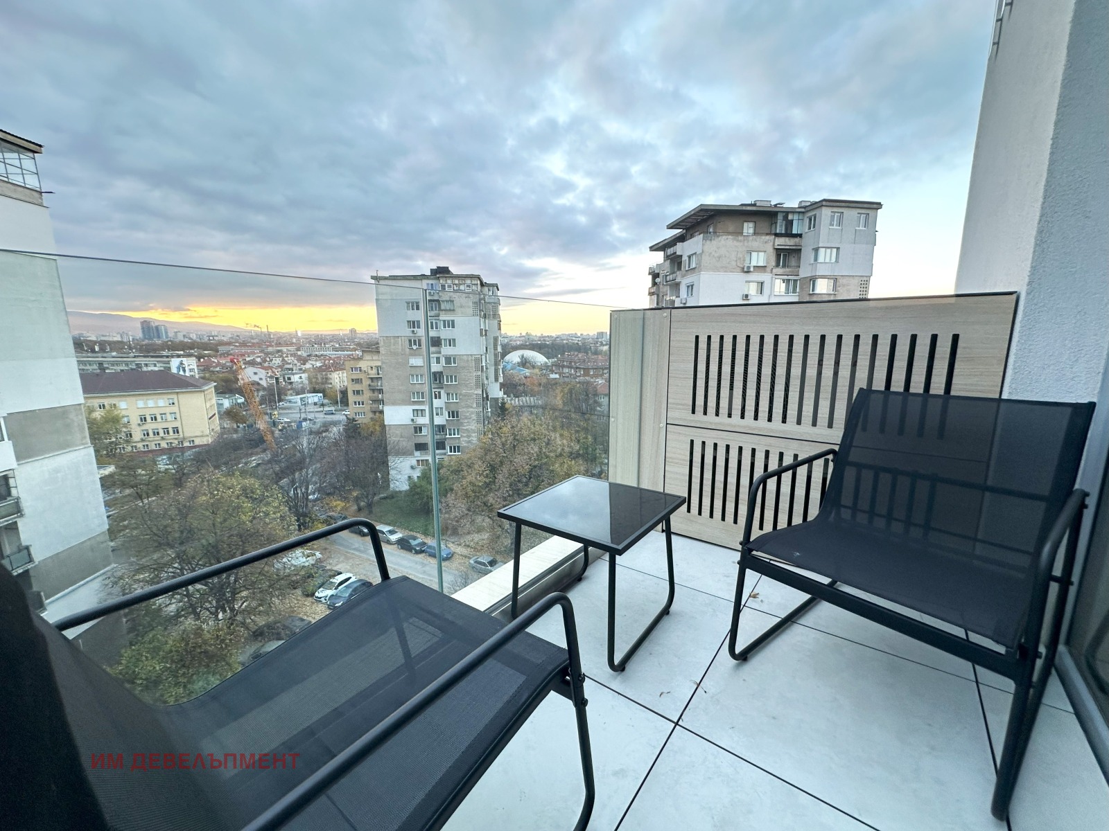 Акцент върху романтична тераса на 7ми-етаж, кота 19,5м, която разкрива любопитна гледка с югозападно изложение, над залезът в София.