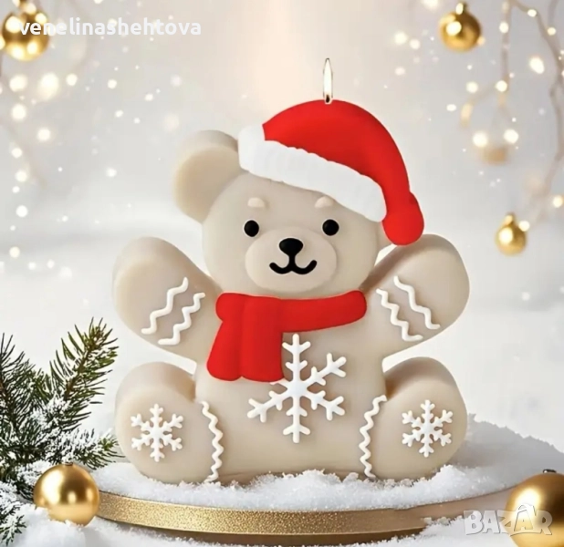 Коледно мече с шапка и шал силиконов молд форма свещи гипс сапун смола фондан шоколад → Обява 52299409