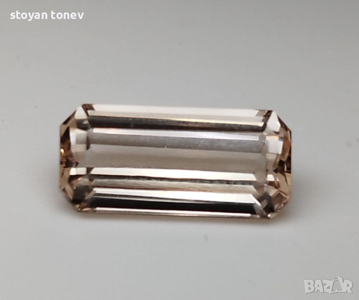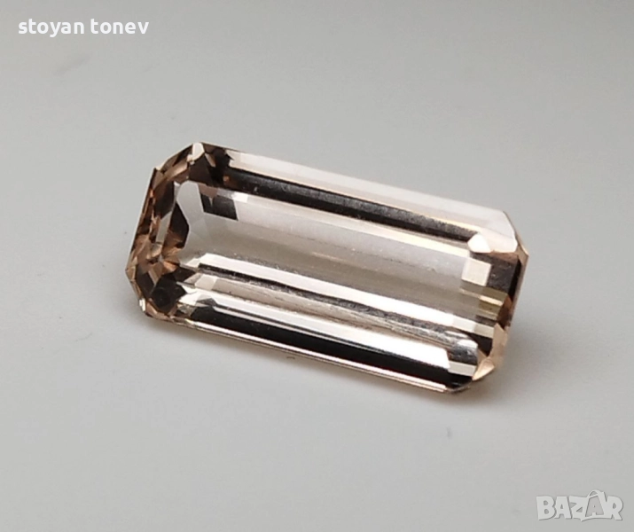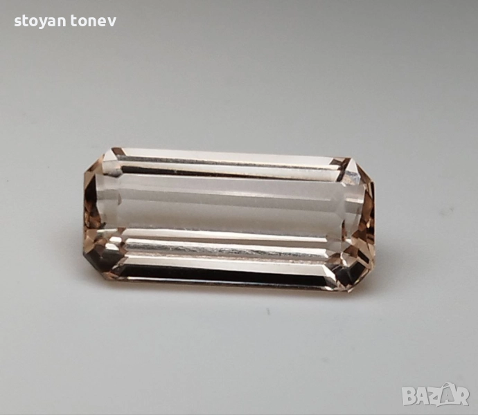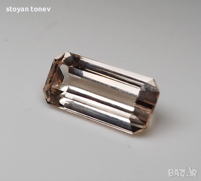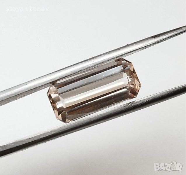 топаз с тегло 4.45кт. и произход Мозамбик. Чистота VS без видими включения. Цвят оранжево розов наподобяващ праскова. Форма октагон с размери: 13.59 x 6.35 x 4.87 mm.