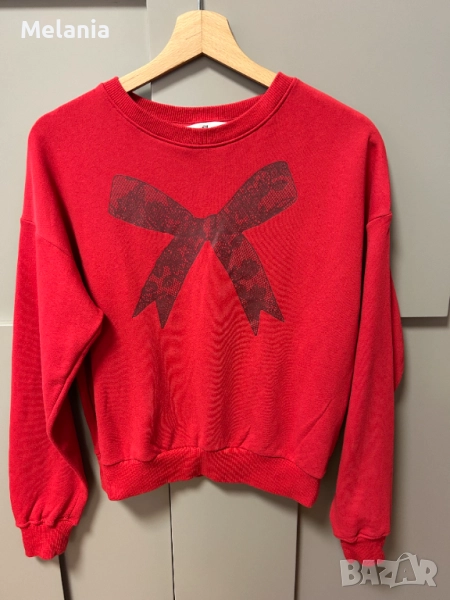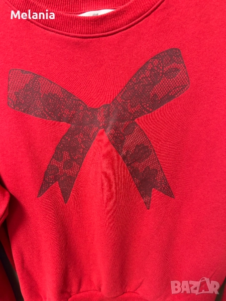 – Червен суичър с голяма щампа на панделка – празничен и впечатляващ.