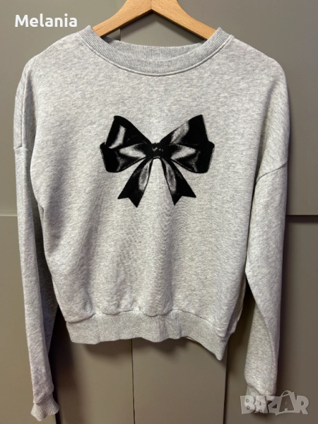 – Сив суичър с черна панделка отпред – класически и елегантен.