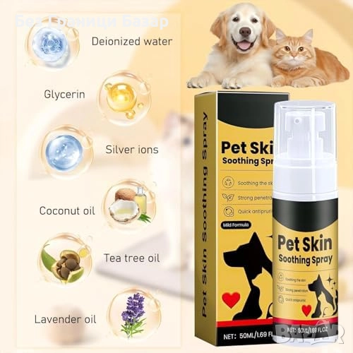 Нови 2 броя Спрей за успокояване на кожа при домашни любимци куче котка