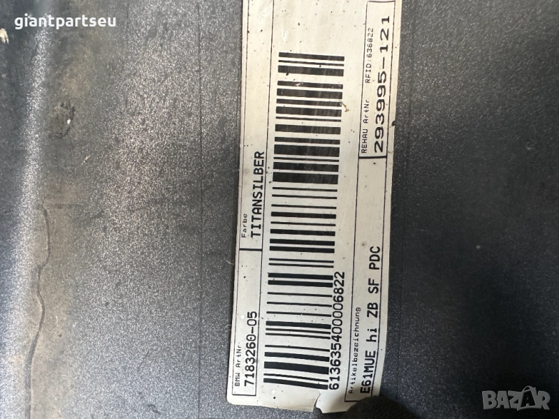 Задна Броня за БМВ Е61, Всяка закупена част има гаранция или замяна 7 дни, "ОБЪРКАНИ! ЧАСТИ! ПРИ! ПОРЪЧКА!" не подлежат на замяна или връщане. Отлично състояние без забележка за повече информация и наличности 0876466151, голям избор на части втора ръка за БМВ! МЕРЦЕДЕС! И АУДИ! както и други марки.