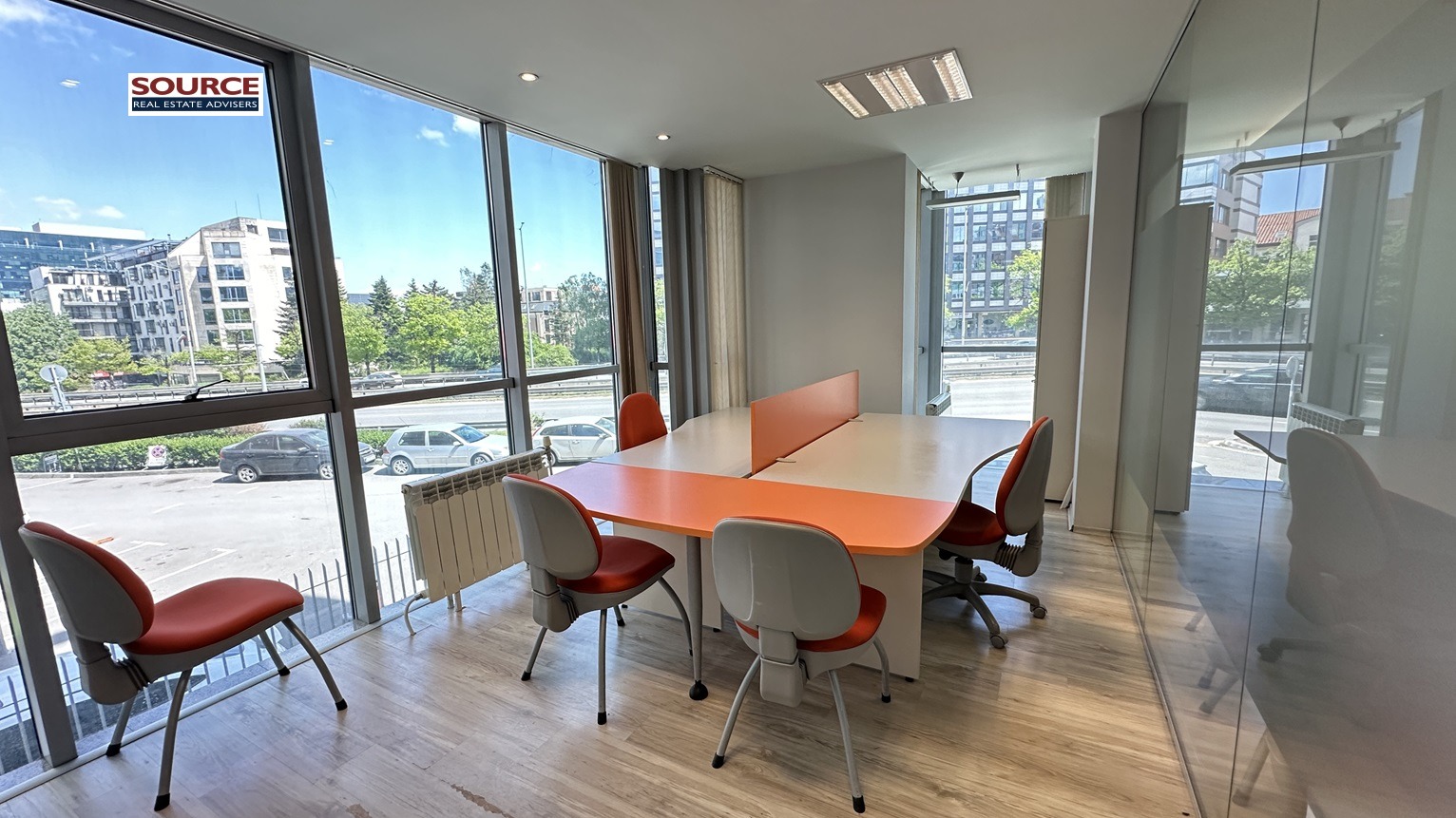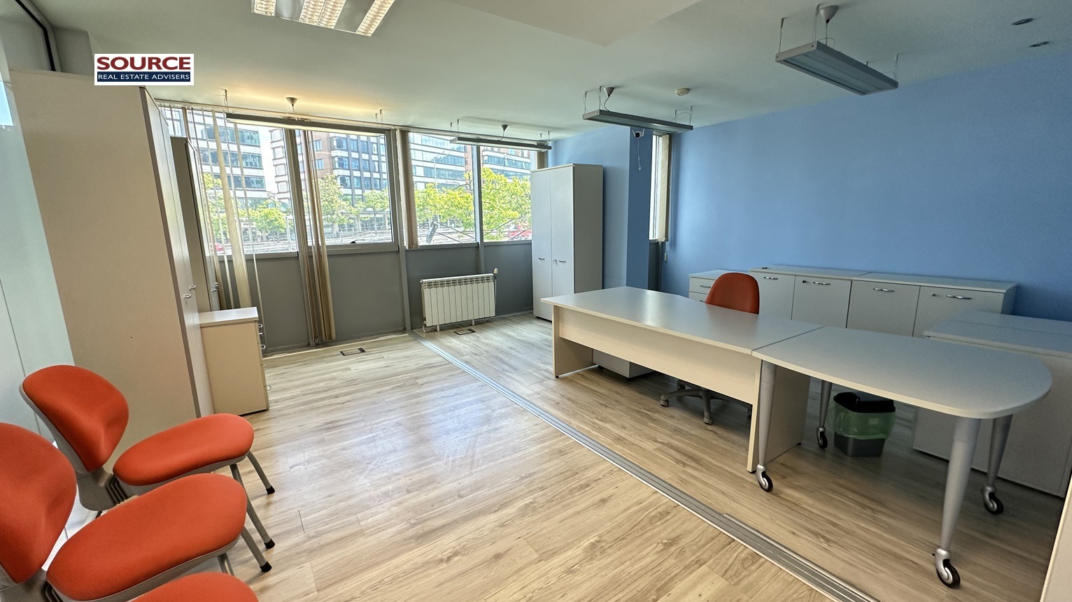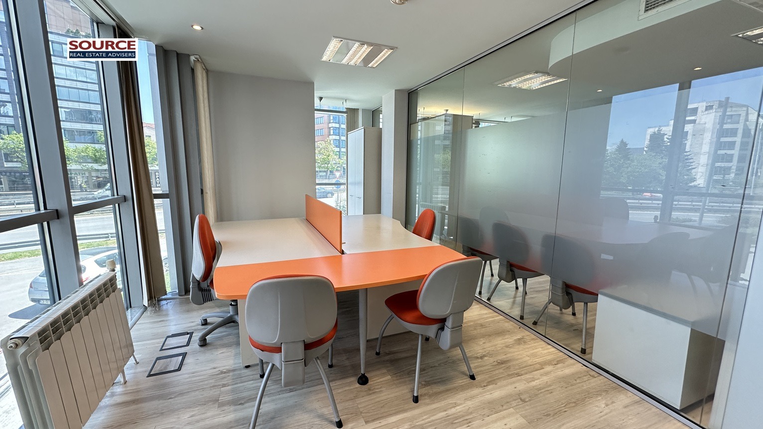 4. Офис обзавеждане: Офисът се отдава обзаведен с обзавеждането на снимките. Може да се наеме и необзаведен.