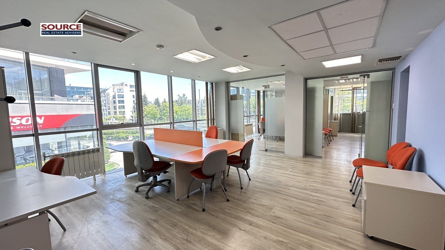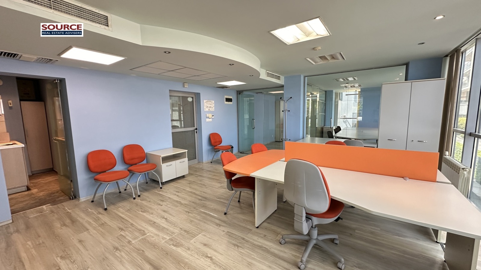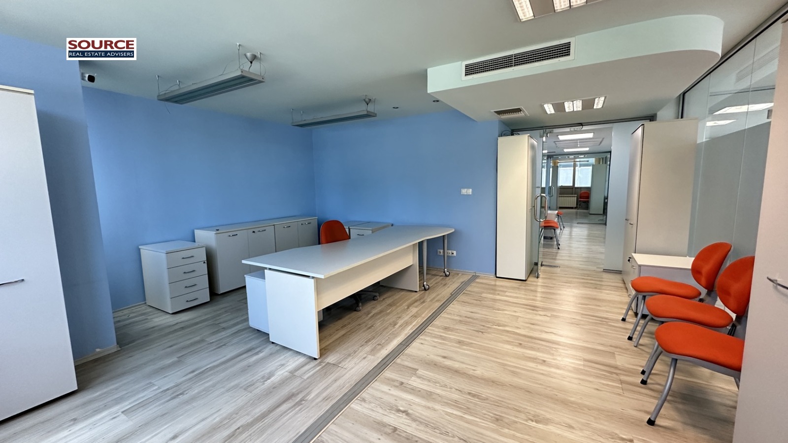 4. Офис обзавеждане: Офисът се отдава обзаведен с обзавеждането на снимките. Може да се наеме и необзаведен.