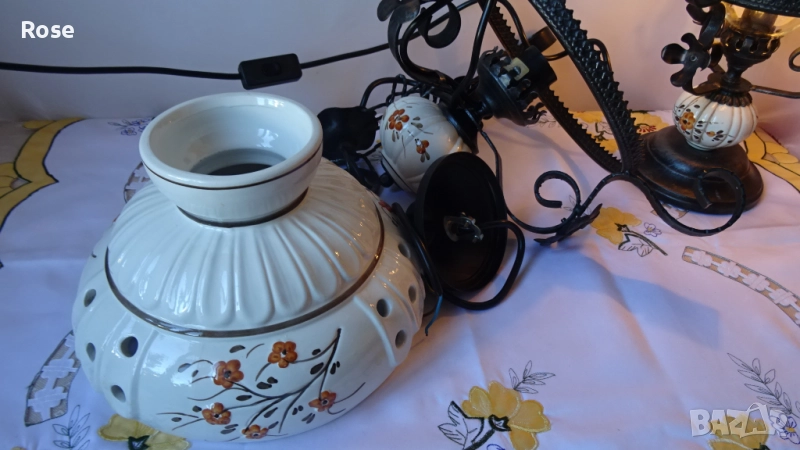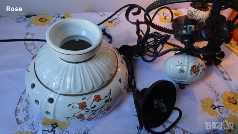 част на лампата и полилея има ръчно рисувана керамична топка със същия флорален
