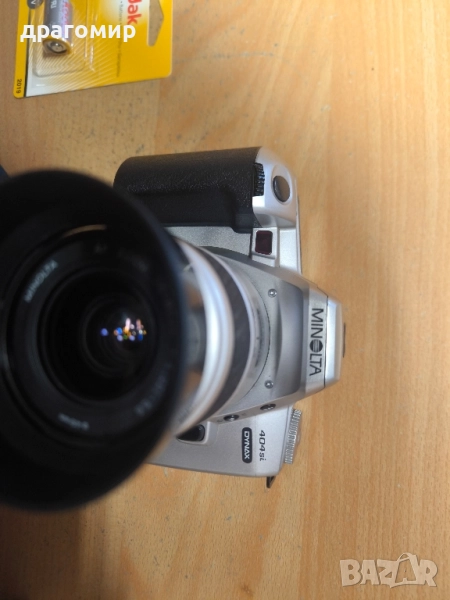 продавам лентов фотоапарат, работи,към него давам и две батерии CR2, с които работи, MINOLTA dinax 404 si, имам още много други фотоапарати, камери, обективи, чанти, светкавици, батерии, зарядни устройства, касети, филтри, ремъци, ленти, при закупуване на повече неща отстъпка
